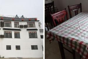 餐厅装修为非常简洁的现代农家风格,建筑简约,清爽自然,餐厅内宽敞